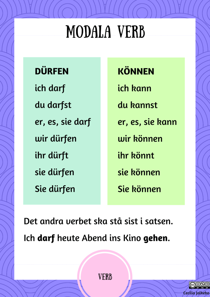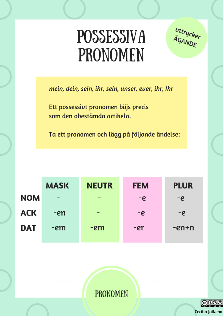 Jag har roat mig med att visualisera den tyska grammatiken lite färglatt och trevligt. Låna gärna och skriv ut som häfte till eleverna, som planscher till klassrumsväggen eller som en infogad bild i en övningsuppgift.