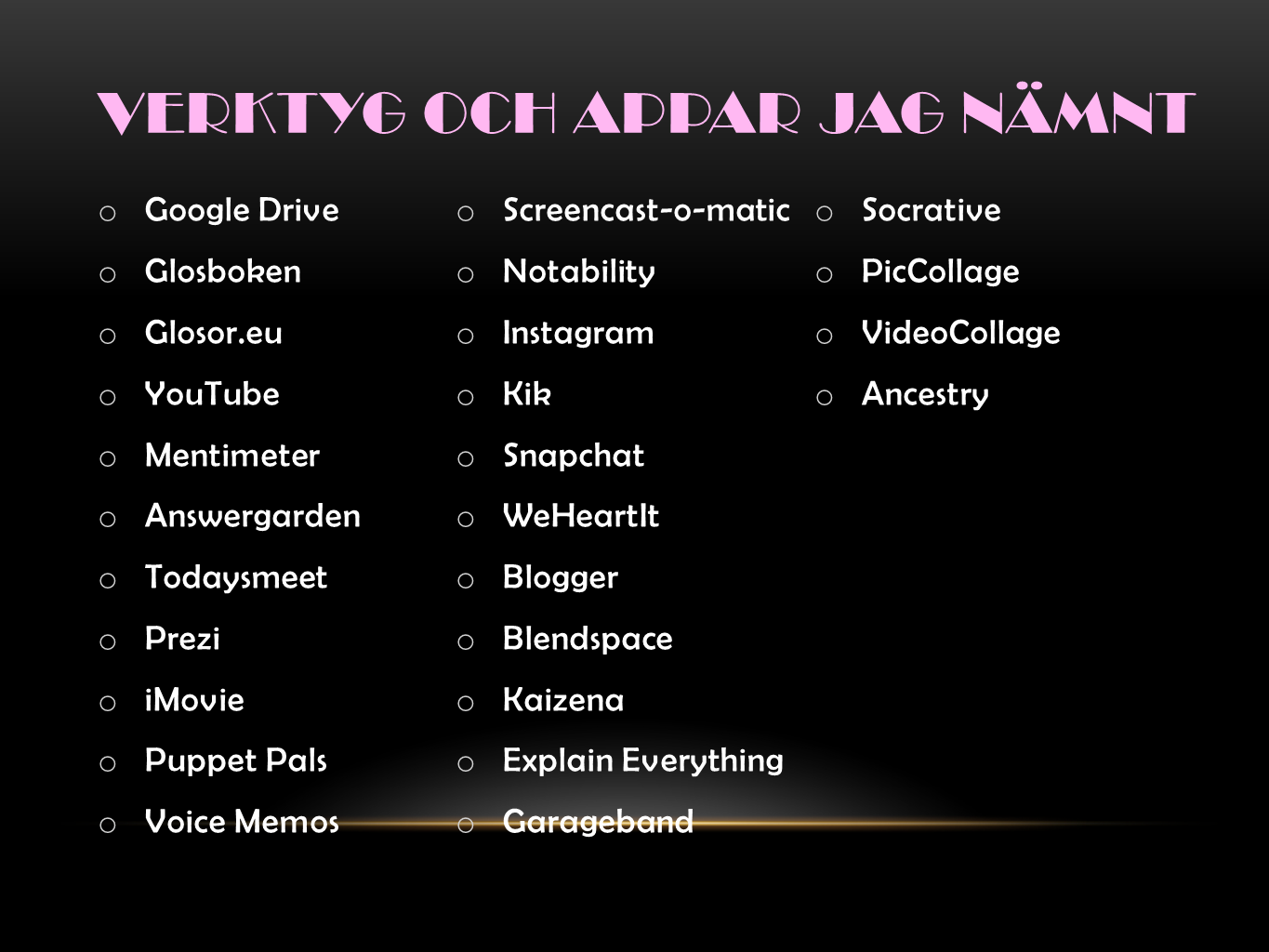 Idag föreläser jag på SETT-mässan. Under min föreläsning pratar jag om hur jag utformar min språkundervisning utan bok – kreativt synligt och tillsammans. Jag nämner följande appar och verktyg: