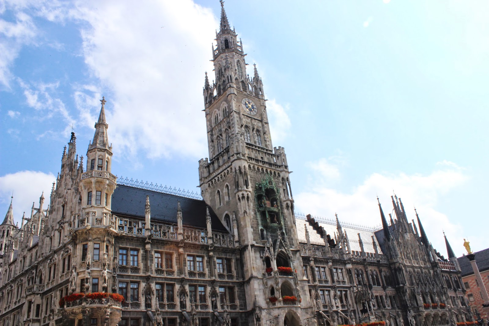 | Det nya rådhuset vid Marienplatz, Mariatorget. |