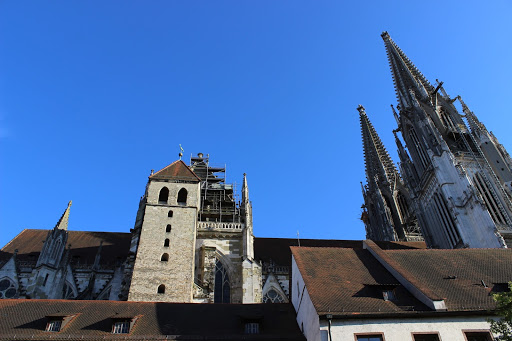Domkyrkan, der Dom, är en av Regensburgs stoltheter, inte undra på med tanke på att det tog 600 år att bygga klart den (!). Det syns i arkitekturen att ett av tornen är ett tidigare bygge än de senare. Det är den enda katedralen i Bayern, ganska fantastiskt för en stad med 150 000 invånare.