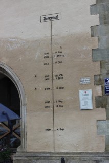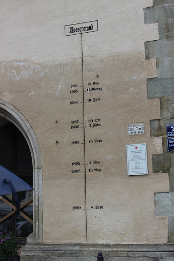 De tre floderna I Passau förenas tre floder: Tysklands längsta flod Donau som flyter genom Bayern, Inn som kommer från Österrike och den lilla floden Ilz. Där floderna flyter ihop kan man se att vattnet har olika färg. Just den här dagen var det dåligt väder så vi kunde inte klättra upp på ett berg där man har bra utsikt över floderna så jag fotade en skylt istället.