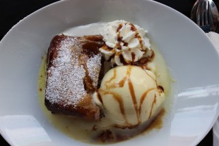 | Apfelstrudel med vaniljglass och grädde. |