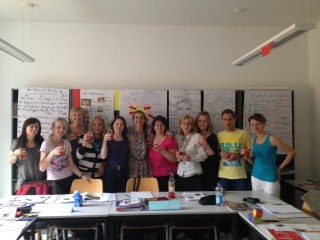 Dagens förmiddagstema var tyska produkter. Vår lärare föreläste om några produkter, vi rollspelade på temat märkesprodukter och provade även några av produkterna.